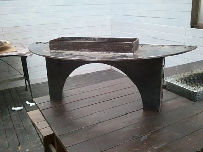 窯を作っていく前に鉄工所で窯の挿入口にあたる部分を